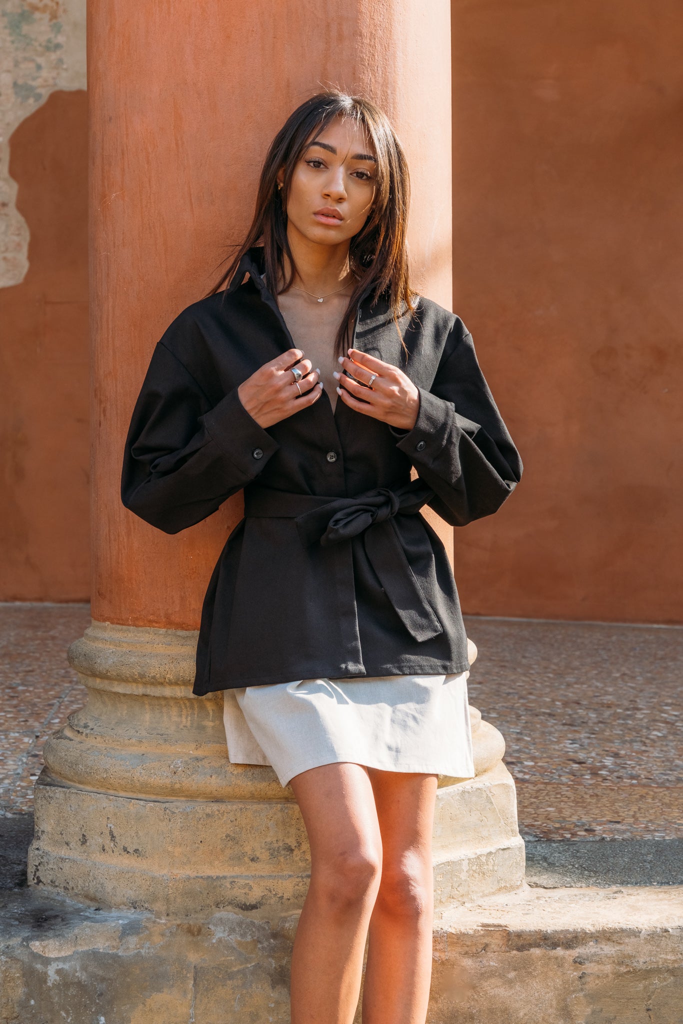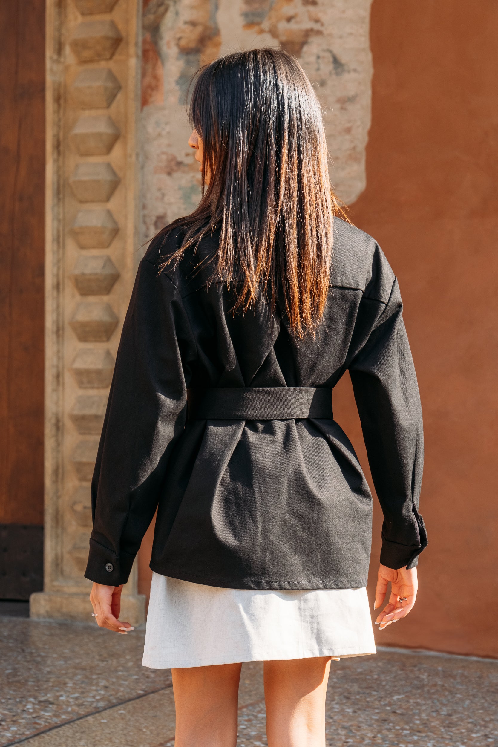 The fan-favorite Verona Vest returns in a sleek Pepper black stretch twill, featuring a button-up front and a sophisticated cross-back detail.