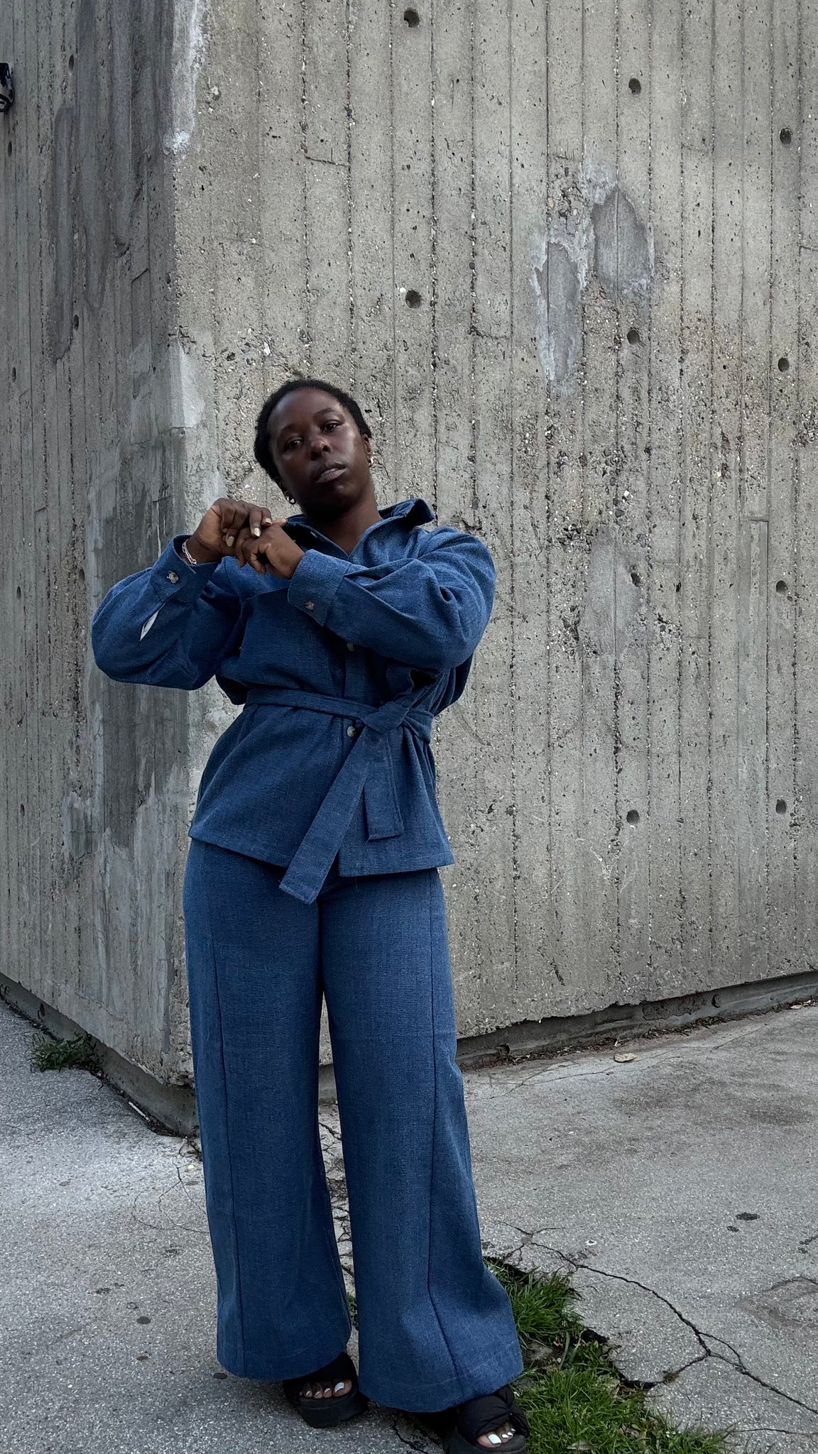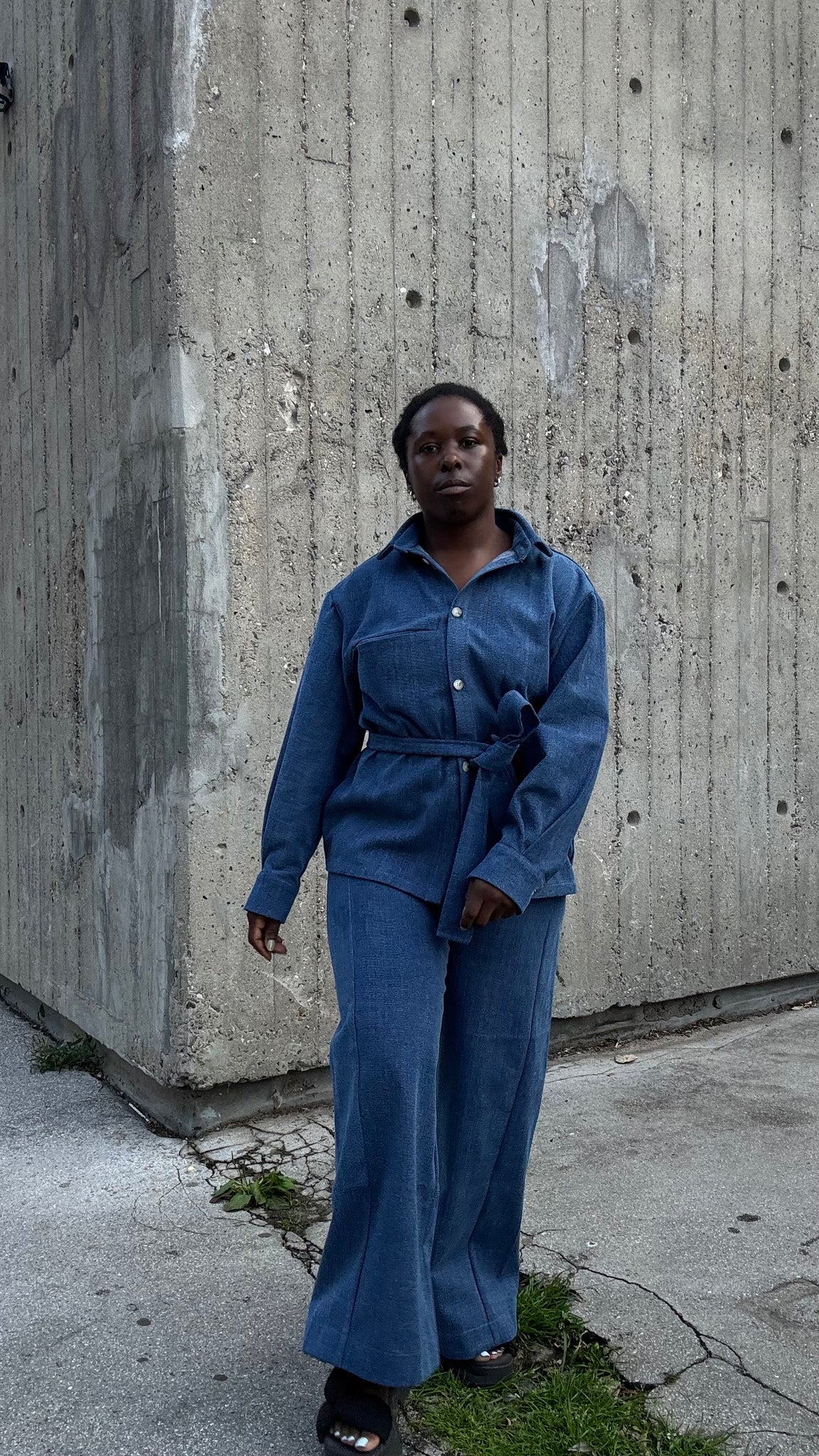 The iconic Vienna Pants reimagined in 100% enzyme-washed cotton Denim for a structured, timeless, and edgy look