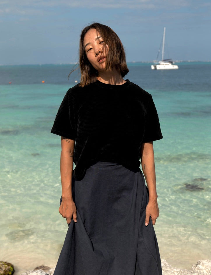 The shirt features a notched collar, adding a sophisticated and refined touch to its design. Designed to be worn with our Faro pants, the Seville shirt creates a cohesive and fashionable ensemble. It can also be worn open as a vest, allowing you to experiment with different styling options. Layer it over a t-shirt or tank top for a relaxed and effortlessly cool vibe.