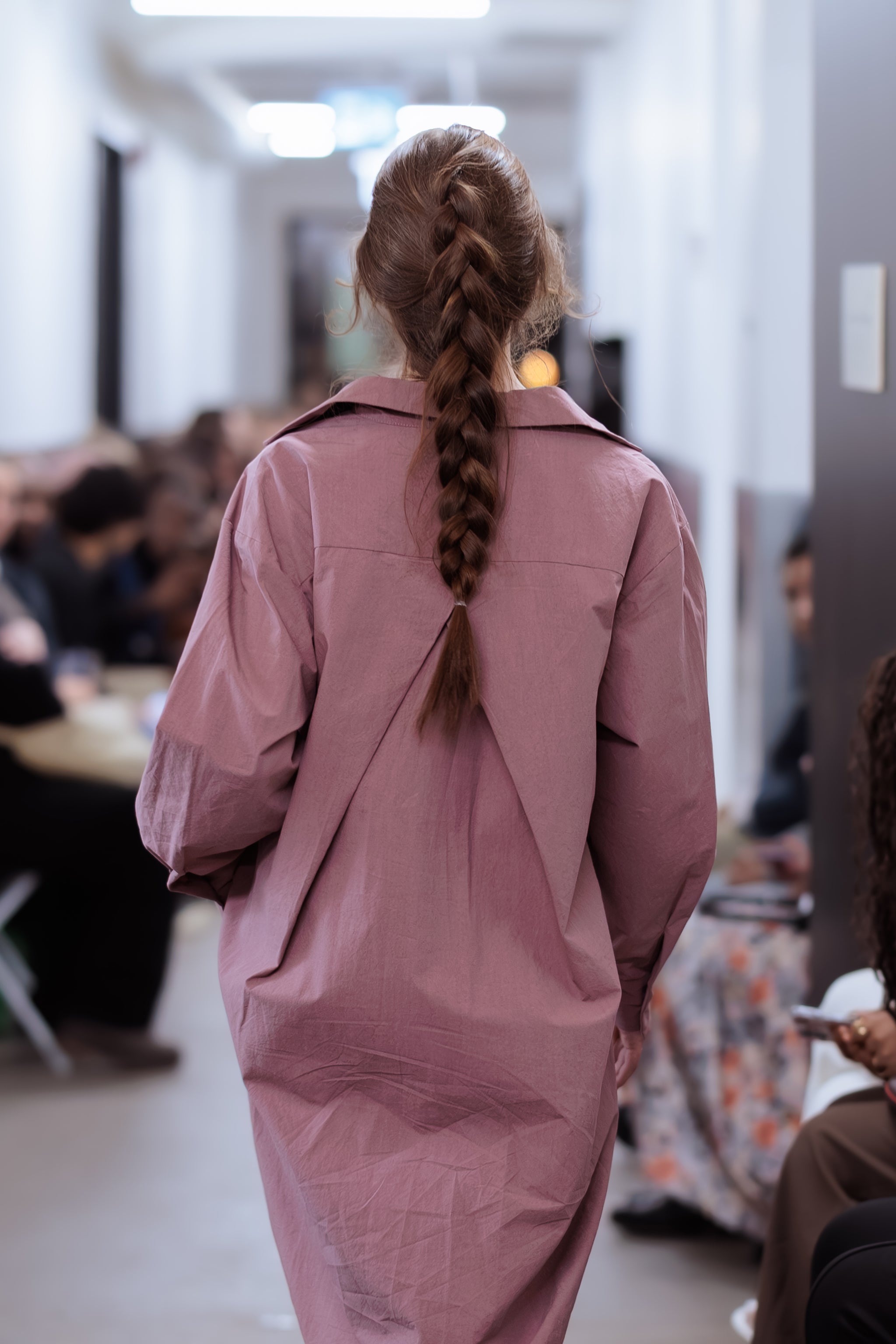 La teinte framboise équilibre la coupe architecturale oversize, créant un look affirmé à la fois ludique et soigné.