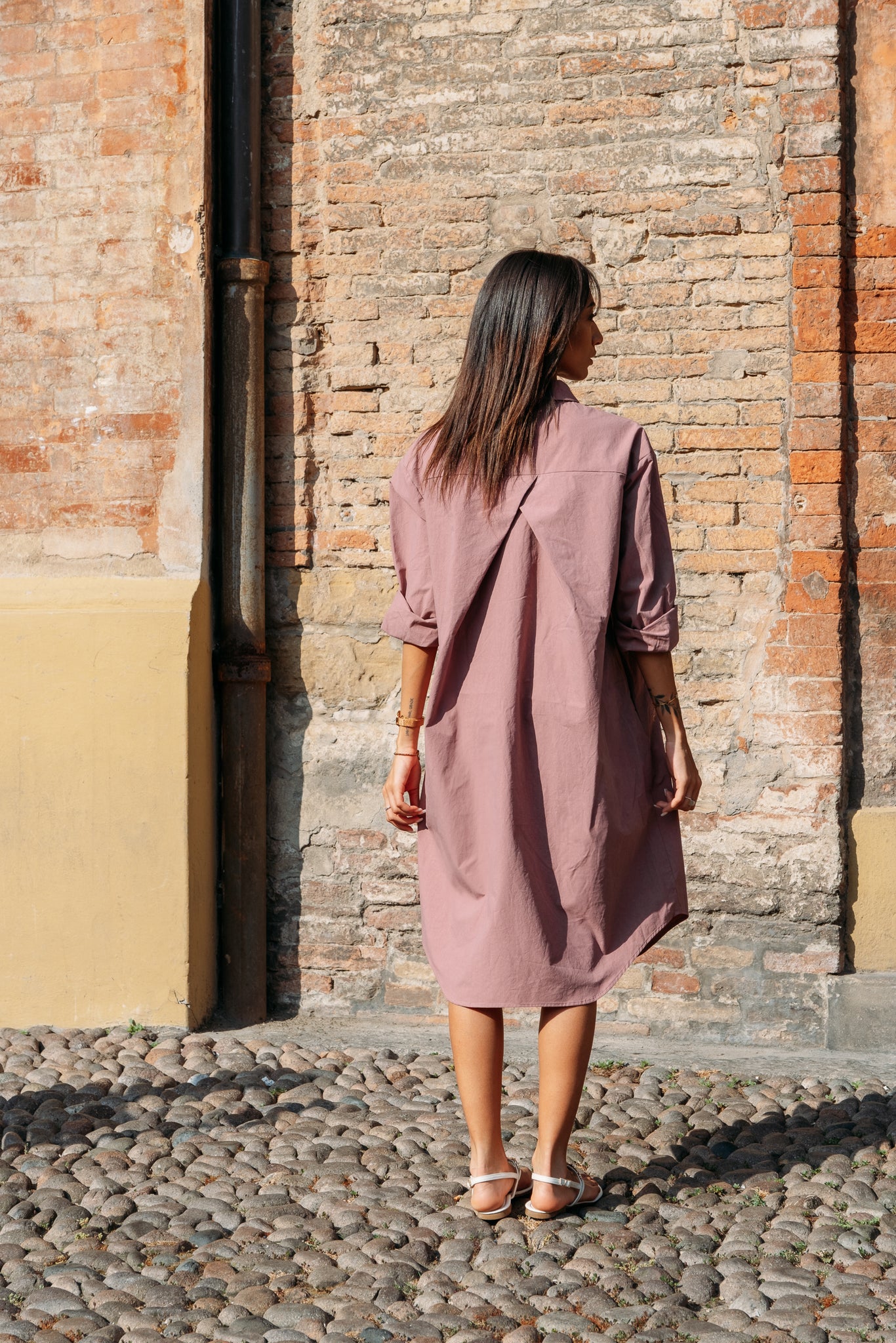 Une robe-chemise rose framboise éclatante 100% coton, dotée d'une silhouette oversize, de poches cachées et d'un élégant détail croisé dans le dos.