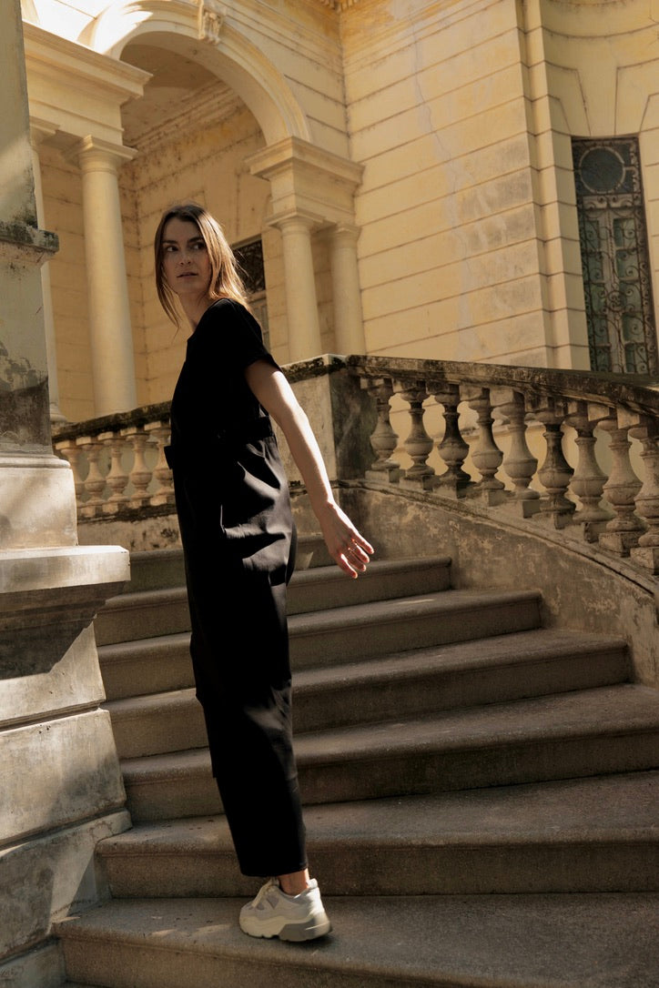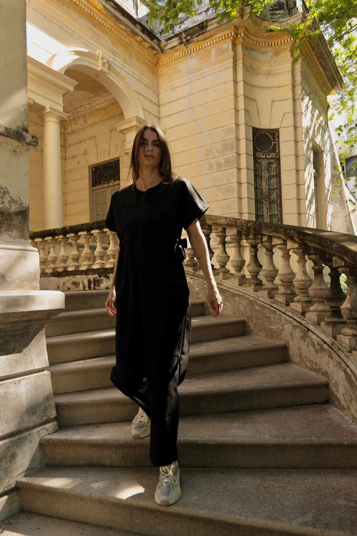 La combinaison Oslo : votre tenue sophistiquée et unique pour l'automne-hiver 2025. Confectionnée dans un mélange de coton extensible confortable, elle est dotée de liens ajustables à la taille, de détails uniques et d'une polyvalence idéale pour toutes les occasions.