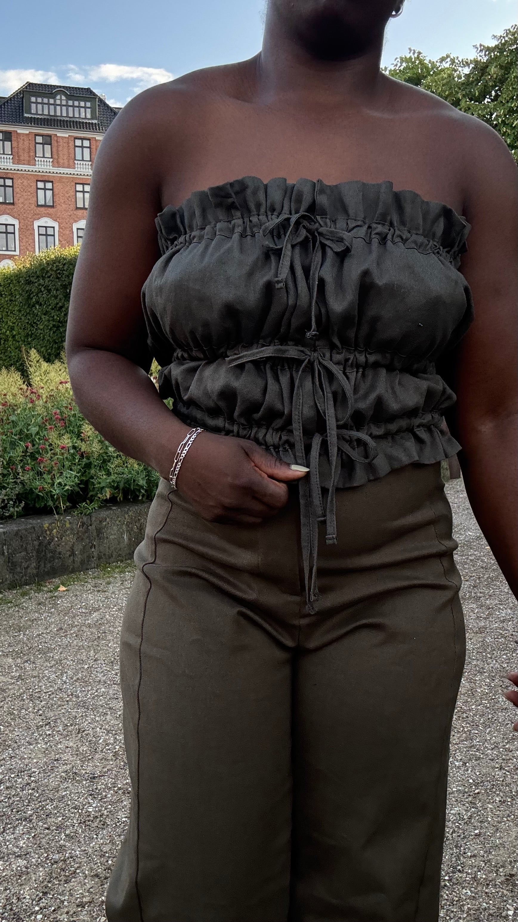 Le haut Havana : un haut bustier naturellement élégant pour la collection automne-hiver 2025. Confectionné dans un mélange de coton et de lin respirant, son cordon de serrage unique offre un style et un confort personnalisables.