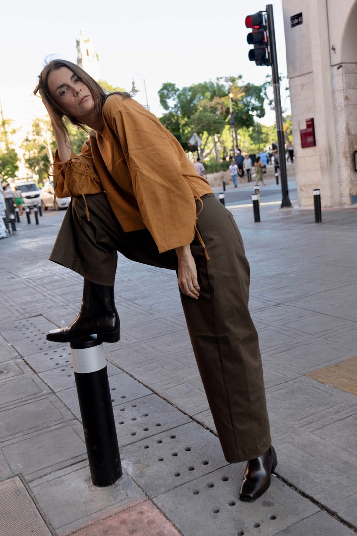 Découvrez le haut Monaco : un haut décontracté et légèrement court pour la collection automne-hiver 2025. Confectionné dans un mélange lin-coton de qualité supérieure, il est doté de poignets à cordon de serrage personnalisables pour un style polyvalent.