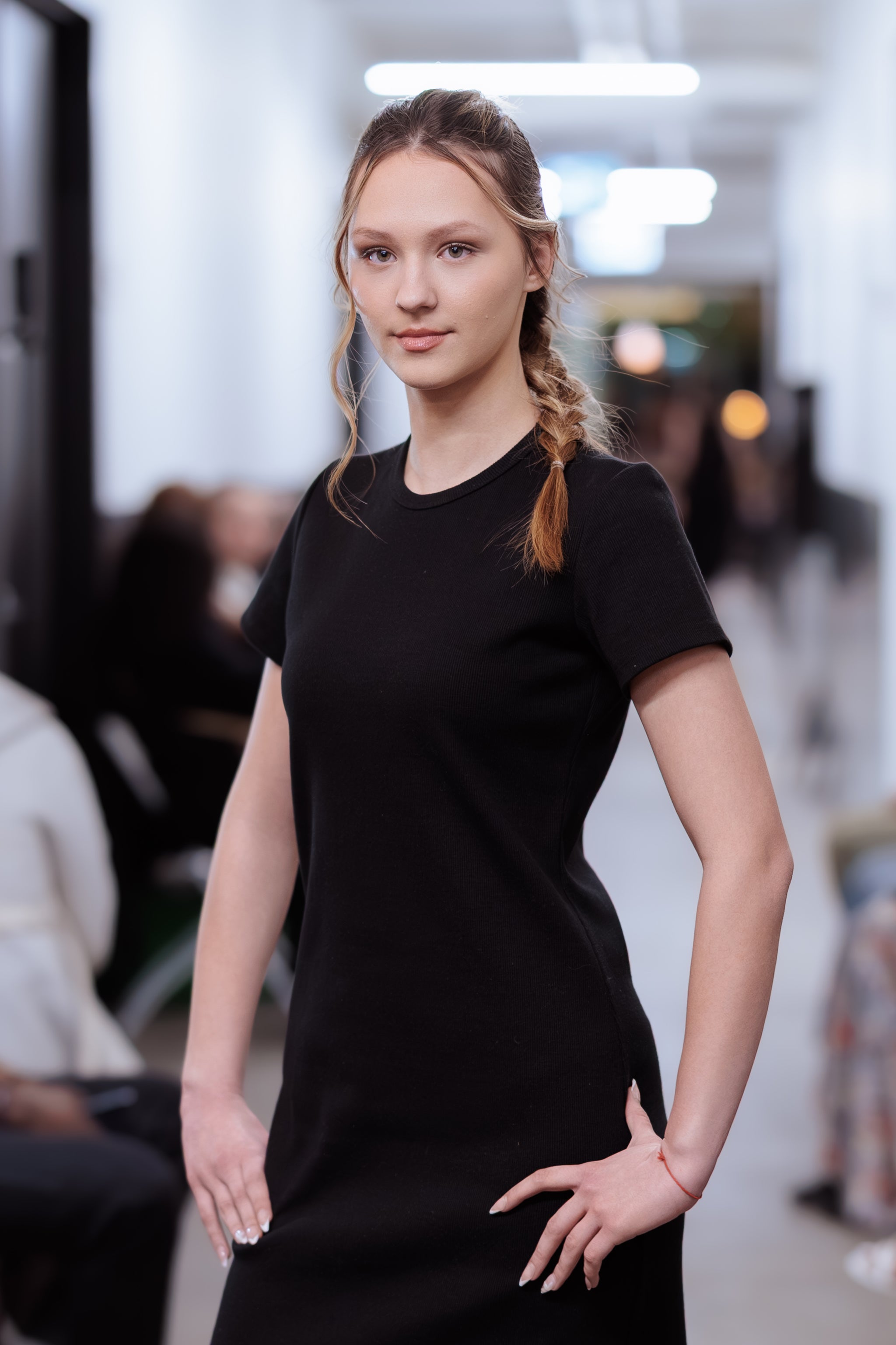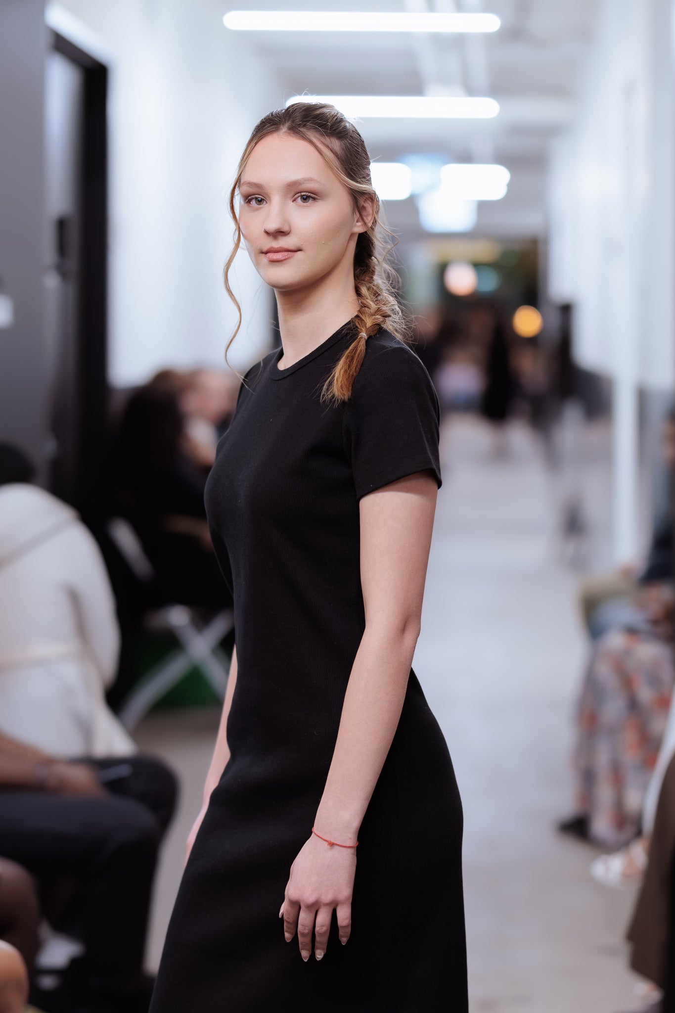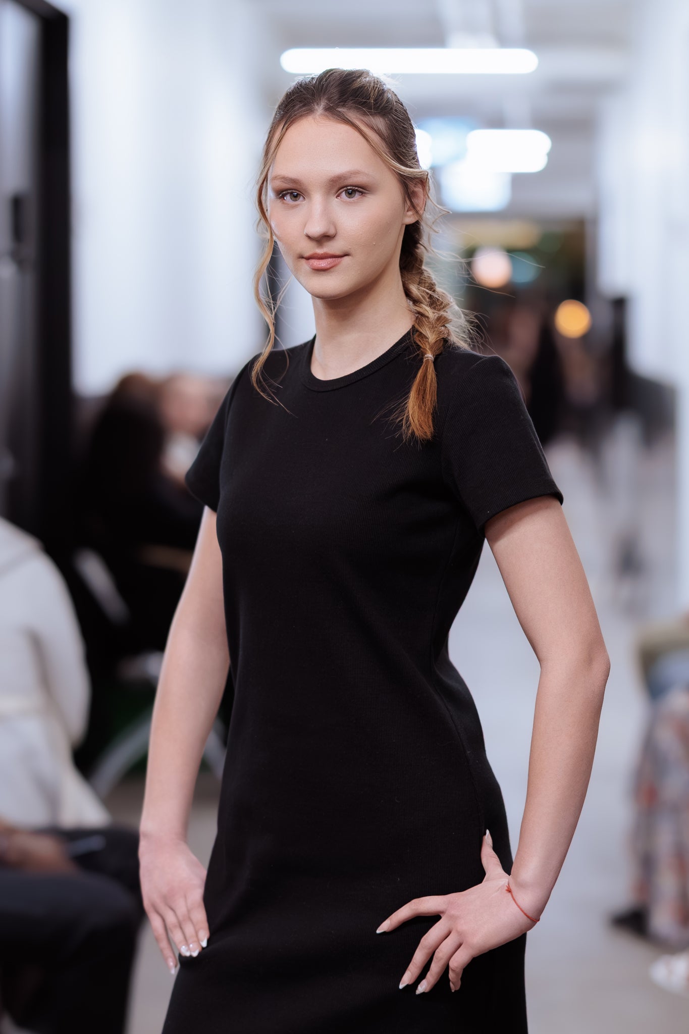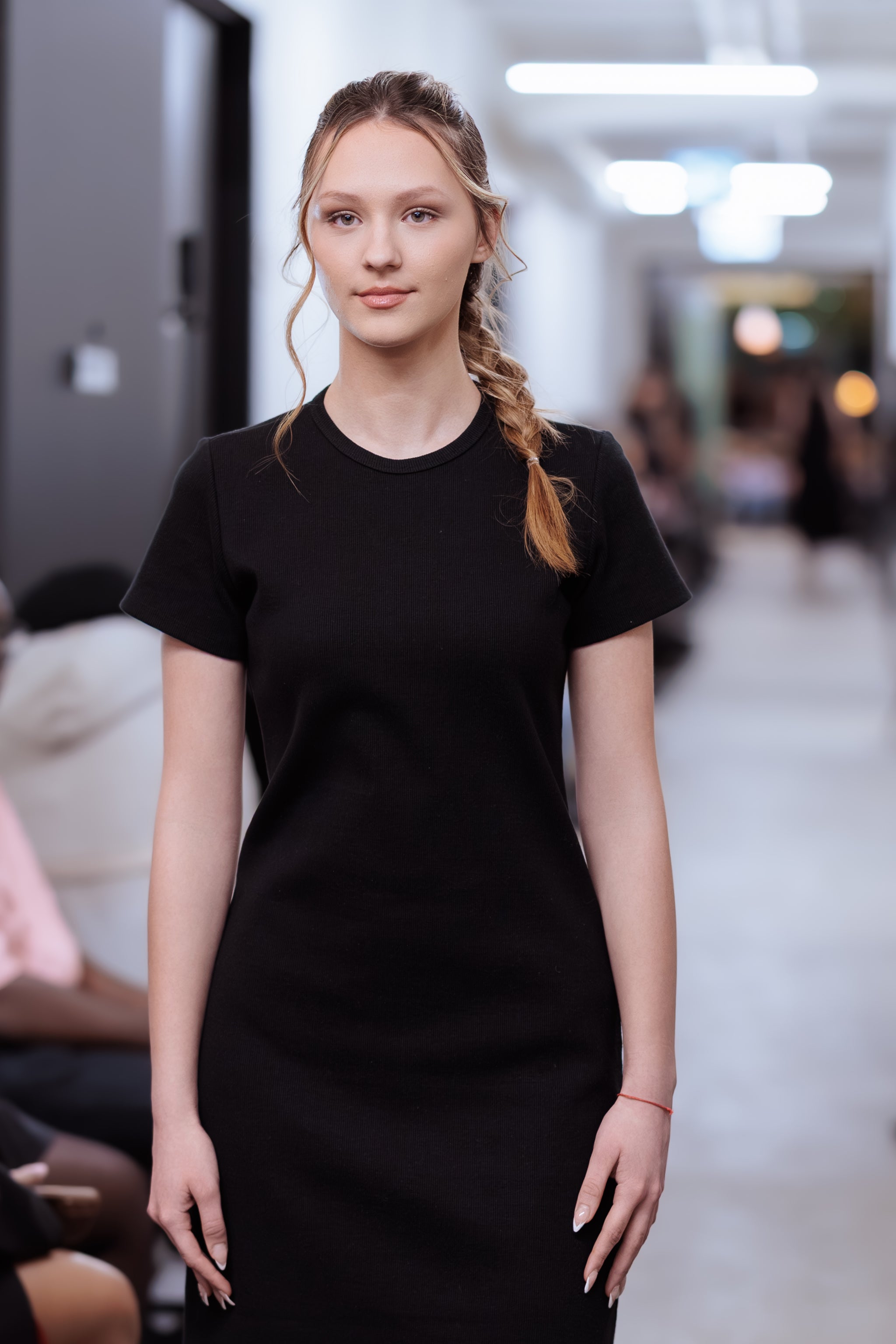 A sleek, Pepper black maxi-length T-shirt dress crafted in our signature supportive rib for a sophisticated city look.