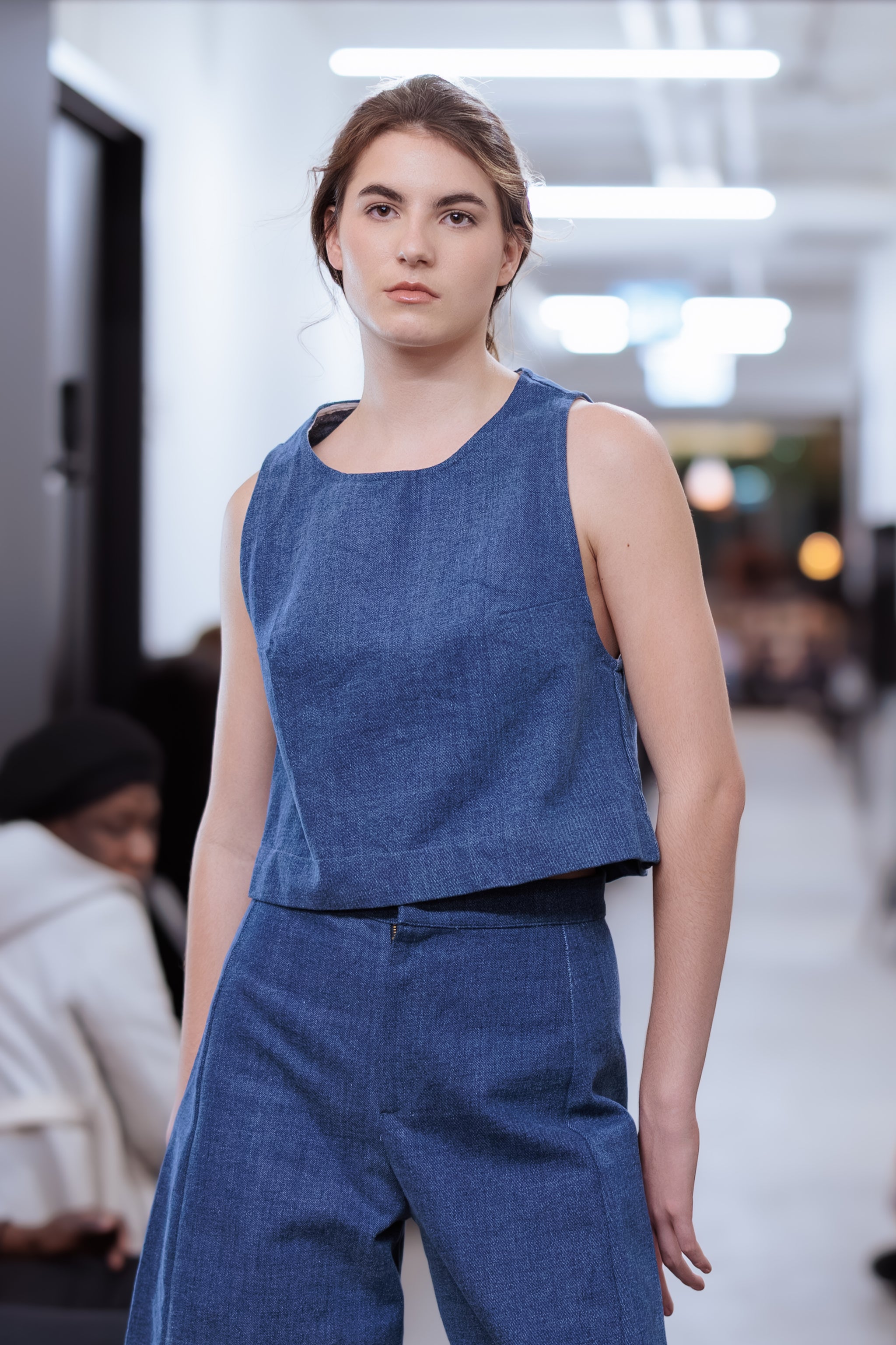 The iconic Vienna Pants reimagined in 100% enzyme-washed cotton Denim for a structured, timeless, and edgy look